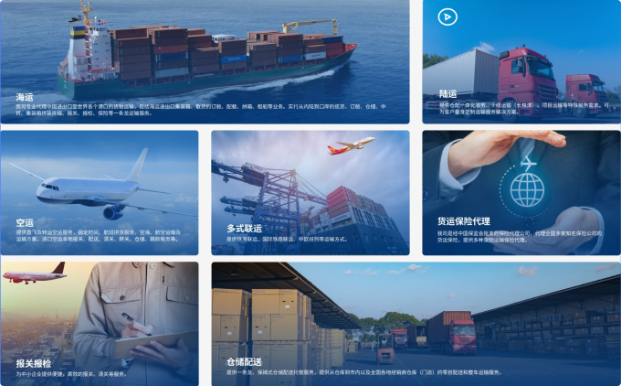 根據客戶需求提供海運、空運、陸運、鐵路運輸、多式聯運、倉儲、配送、報關報檢、貨運保險代理等物流定制化、個性化解決方案。